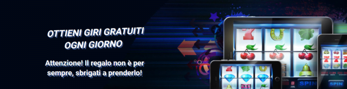 Ogni giorno della settimana puoi ricevere dei giri gratis, basta soddisfare i requisiti di puntata che trovi nella sezione “Bonus e Regali” del Casinò.