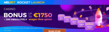 Melbet Casinò ti offre un pacchetto di benvenuto pari al 200% suoi tuoi primi 5 depositi fino a 1750 euro + 290 free spins.